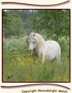 Southern Scarlet s.-06 (e. Dukeshill Savannah) 2007 Welsh Show; I plk, Champion Nuori 2009 Poninäyttely; Best In Show Moondelight Nereida s. –07 (e. W. Delight) Moondelight Marilyn s.—07 (e. Betws Marian) |